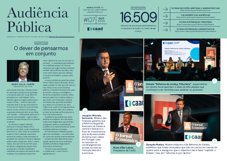 Saiu, hoje, o número sete da Audiência Pública, a newsletter do CAAD. Na edição especial deste mês de outubro, a Conferência anual do CAAD sobre "As reformas do Estado".